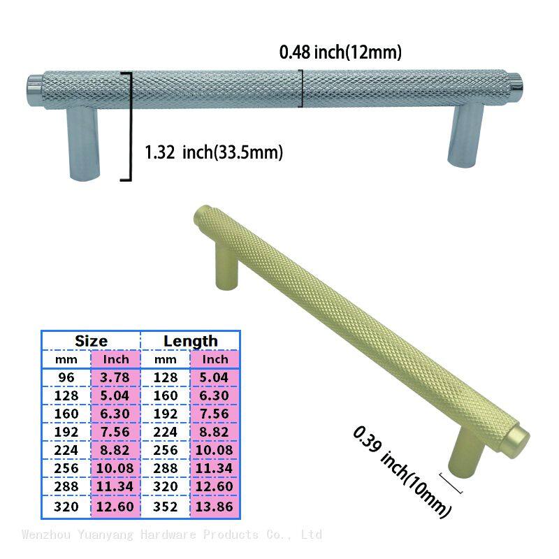 Aluminum Kitchen Handle Knurled Wardrobe Metal Pull Handles Furniture Cabinets Door T Bar HandleUS$ 0.333 - 0.777MOQ: 500 Pieces