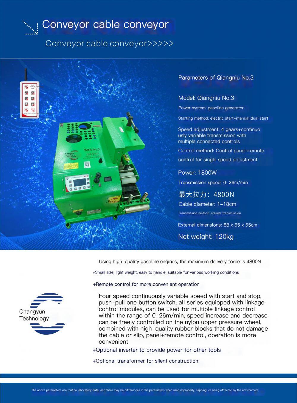long-distance cables, reducing labor intensity, and improving construction quality.