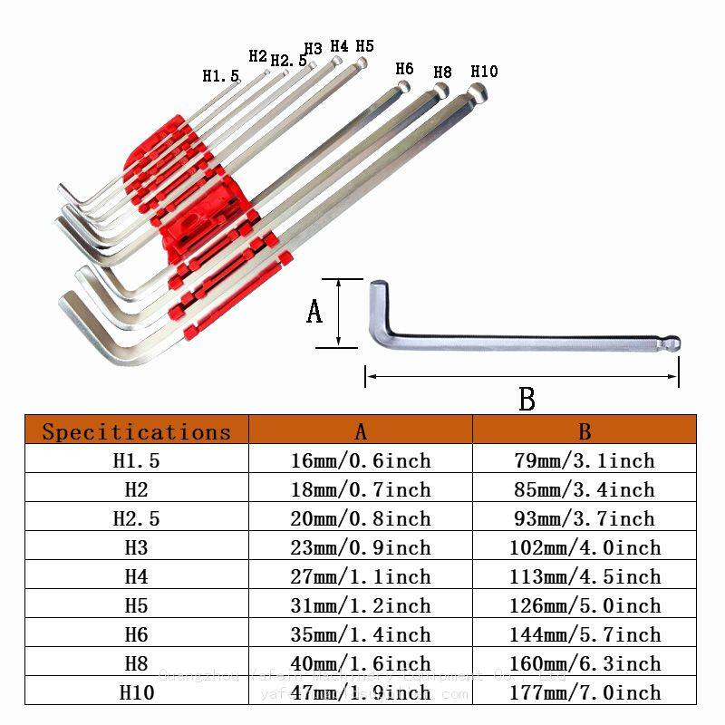 - Ball Head Hexagon Wrench Set Ultra Long 9 Pieces Set of Alloy Steel Material is Durable and Not Easy to Deform 0.06in-0.39in