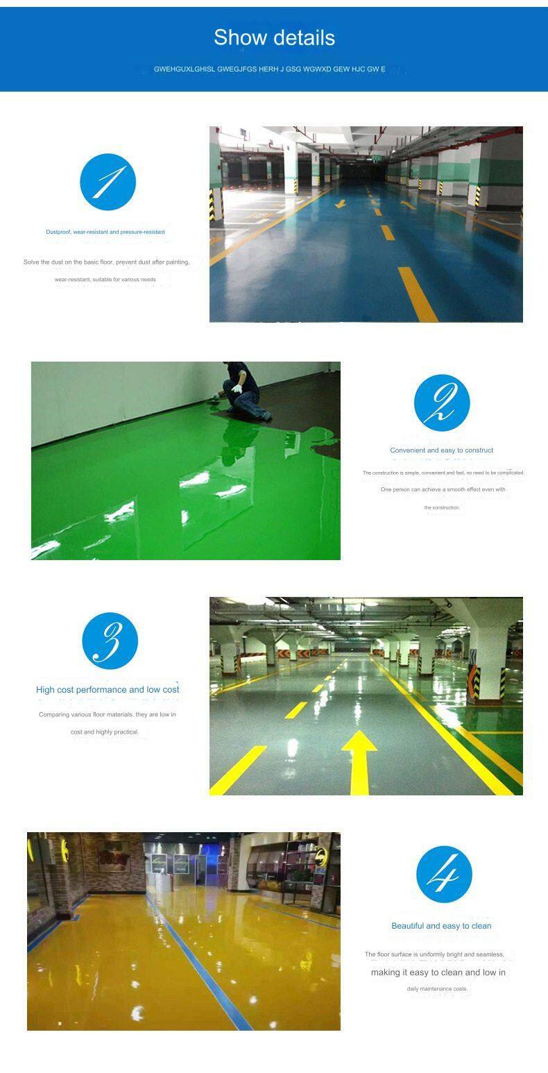 Water Based Epoxy Floor Paint for Garage Construction. Self Leveling Floor Paint is Wear-resistant and Dustproof, With Multiple Colors Available for Selection