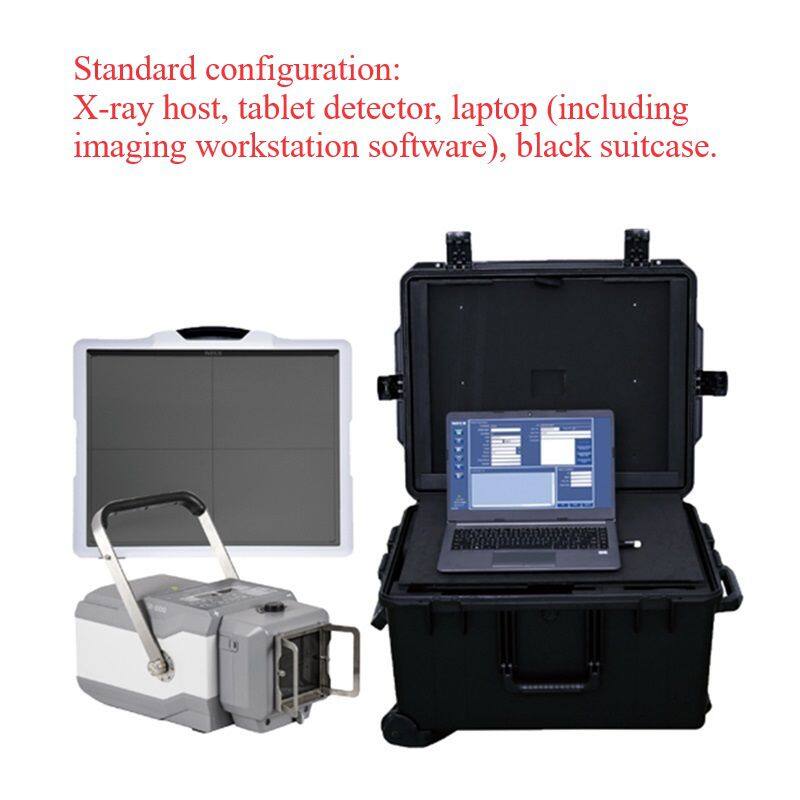 Standard configuration: X-ray host, tablet detector, laptop (including imaging workstation software), black suitcase.