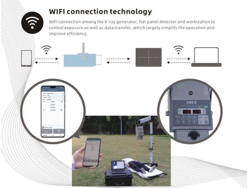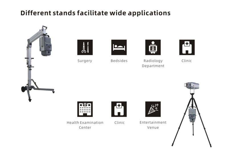 Compact in structure and convenient to carry, the entire system includes components such as flat panel detectors, X-ray machines, imaging workstations, power supply devices, and cabinets. It is small in size and easy to carry, suitable for various applications such as first aid, medical visits, and physical examinations;