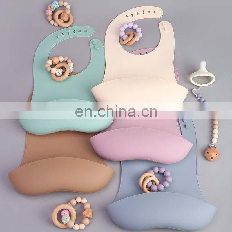 Waterproof Baby Silicone Bib Set Colorful Silicone Baby Bib Custom Printed Free Sample Bpa Free Food Grade Children Feeding Kids