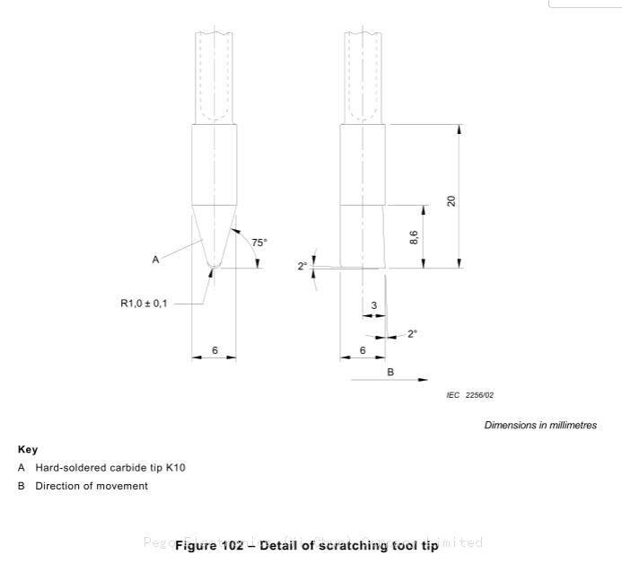 The scratch test pin is designed according to IEC60335-2-24 fig. 102 and GB4706.13 Fig 102. It’s used to perform scratch tests on the accessible component surfaces of all protected cooling systems in appliances, including accessible surfaces that are in close contact with the protected cooling system.