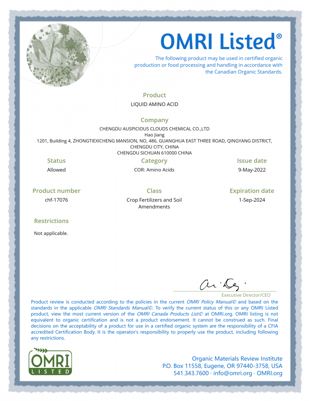 It can chelate soil nutrients, stimulate root growth, make crops grow steadily and vigorously, with high fertilizer utilization and remarkable yield.