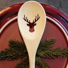 Bamboo Wood Kitchen Utensil Burned Christmas Holiday Cooking Utensil Set Engraved