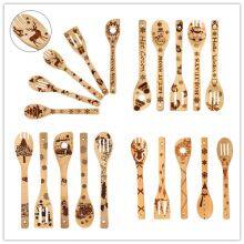 Wholesale Christmas Cooking Bamboo Utensil Set Burned Original Bamboo Wood Manufacturer