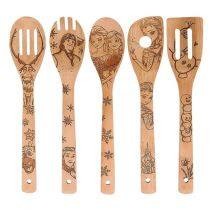 Halloween Gift Christmas Kitchen Gift Bamboo Utensil Set Engraved Cooking Tools Burned
