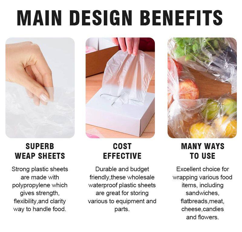 China Wholesale Vegetable Fruit Bread Pop-up Deli Wrap Poly Sheet Plastic Produce Bag