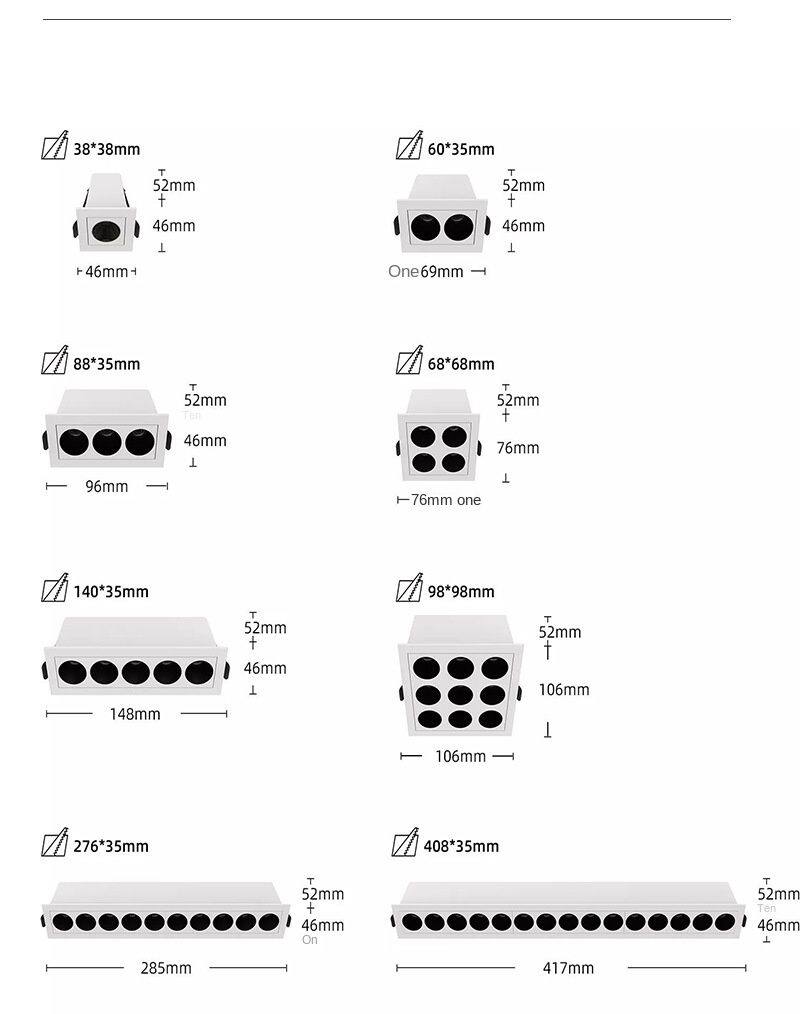 Embedded Line Spotlight LED Hole Without Main Light Strip Anti Glare Black Long Strip Spotlight Grille Square