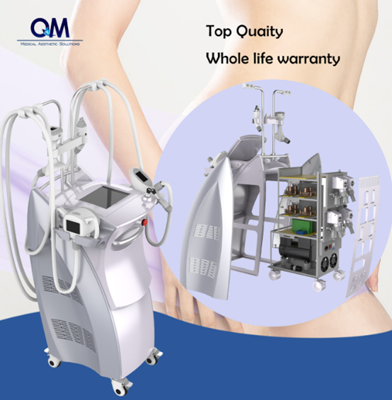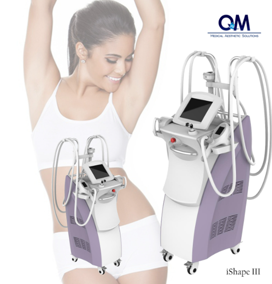 The synergistic combination of infrared laser and conducted Bipolar RF energies increase the oxygen intracellular diffusion by heating the skin Vacuum plus specially designed rollers manipulate leads RF penetration to be even 5-15mm. At the same time, Cavitation and Rollers mechanical tissue manipulation nips and stretches fibrillar connective tissue, effectively breaks down subcutaneous fat as well as extruded capillary vessel, Increase lymphatic drainage, promotes metabolism and reduces or shrinks the size of the actual fat chamber and greatly improved body contouring effect;