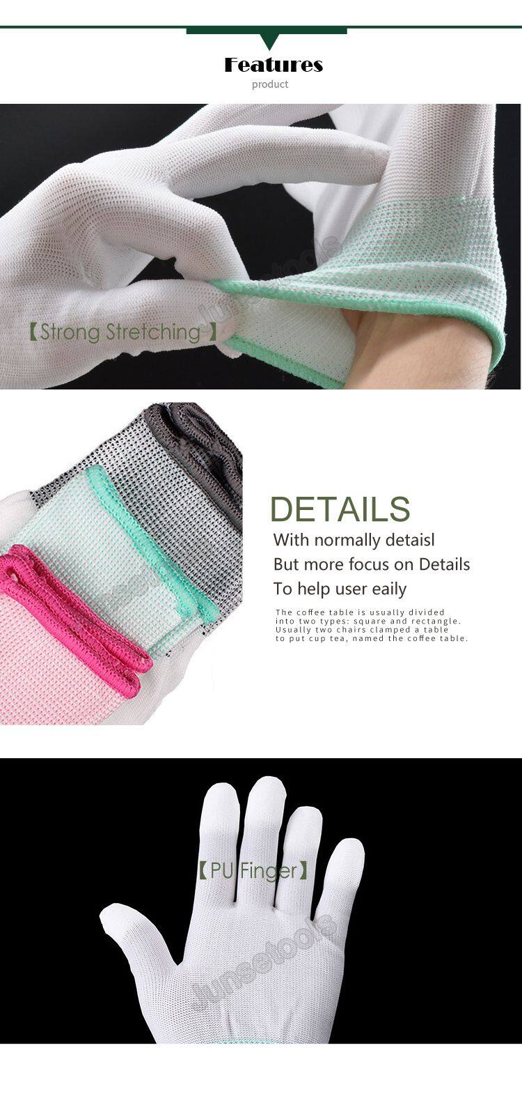Anti-Static Golves With Plastic of Finger Handmake Gloves Protect Gloves