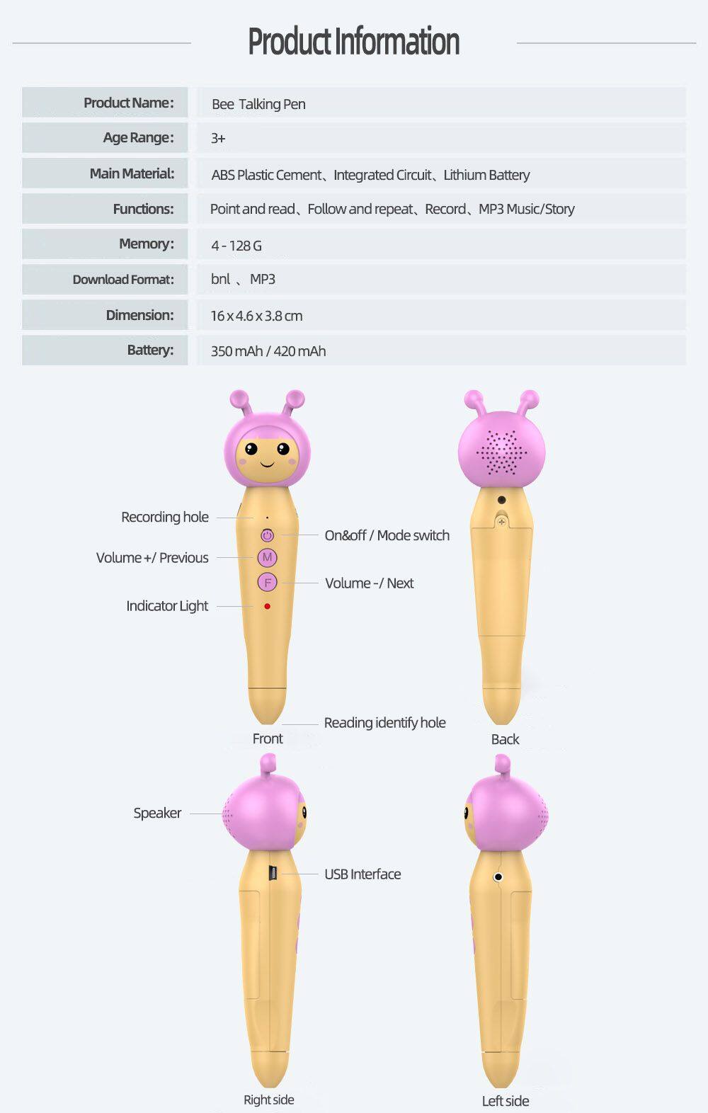 Tell stories and sing nursery rhymes. The pen head uses the second-generation encrypted OID pen head, which is very sensitive in sensing.