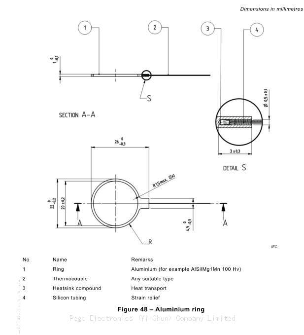 The aluminum Ring is designed according to IEC62368-1 figure 48, the ring is made of aluminum, and configure with K type thermocouple, the end of thermocouple equip with plug.