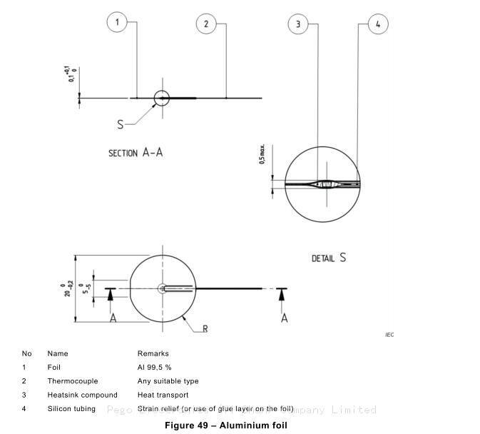 The Aluminium Foil is designed according to IEC62368-1 figure 49, the ring is made of 99.5% aluminum, and configure with K type thermocouple, the end of thermocouple equip with plug.