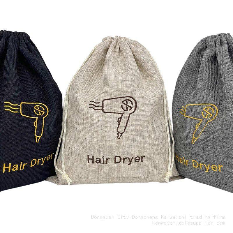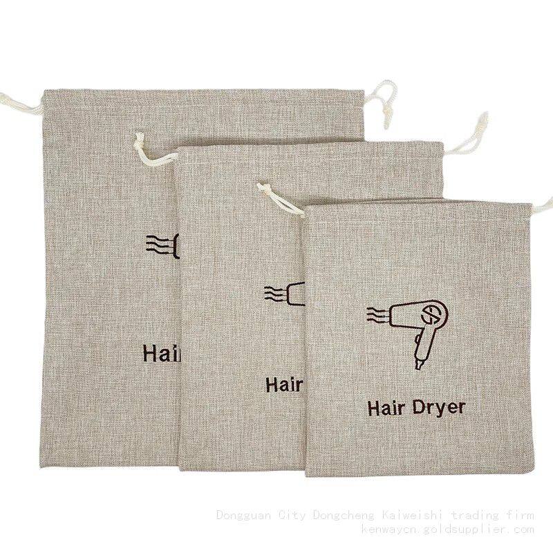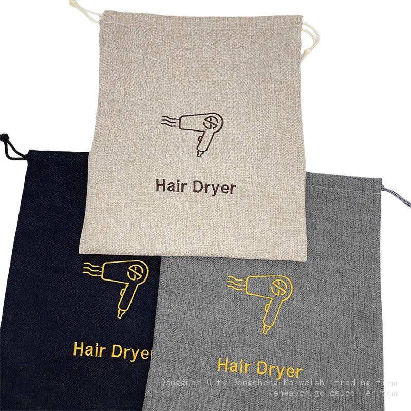 Home > Products > OEM drawstring bag & pouch > Off-the-shelf Beige Linen Hair Dryer Storage Bag Dust-proof Bag Hotel General Purpose Hair Dryer Flannel Bag Drawstring Bag