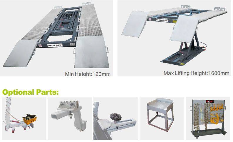 frame machine DL-3600 is one scissor lift frame rack that not only can react as a car lift but also can do car body and chassis straightening repair after it is equipped with straightening and pulling accessories and fixturing. The lift capacity is 3000kg, lifting height is 120-1600cm.