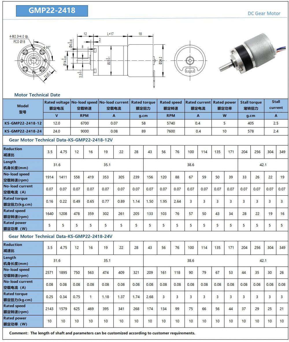 22GP-2418 DC Brushless Motor 12-24VDC With Planetary Gearbox Hall Sensor Encoder