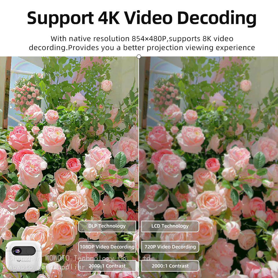 WOWOTO Portable 3D 4K Android Video Projector 2000 Lumen WIFI BT Led DLP Home Theater Screenless Mini Smartphone Projector