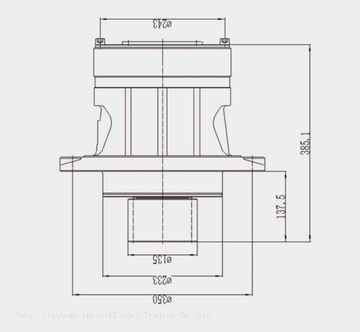 The slewing tower structure is generally based on the top-level planetary structure, which is composed of a vertical shaft, a vertical shaft seat, a ring gear, a planet carrier, planet teeth and other components. The structure and topology are reasonable, with high efficiency, low noise, etc., and can be used with a variety of hydraulic Rotary motor matching.