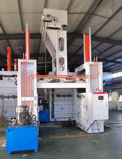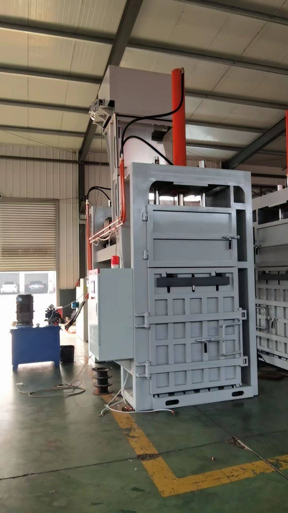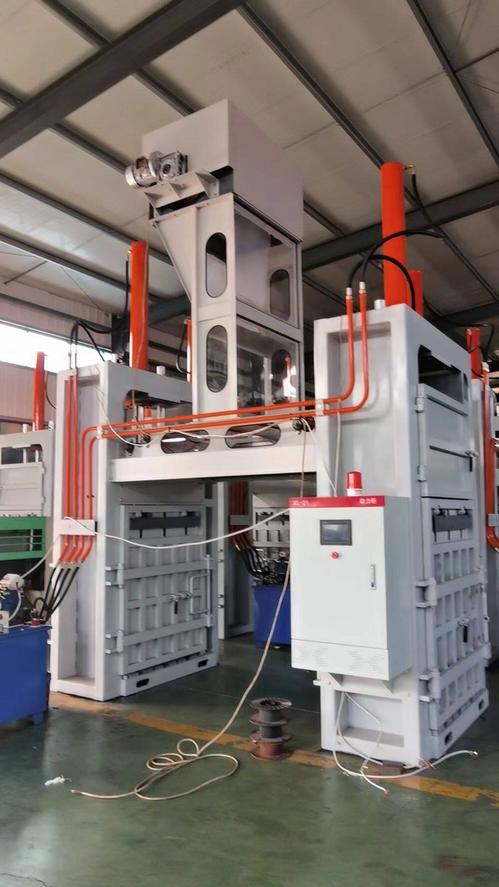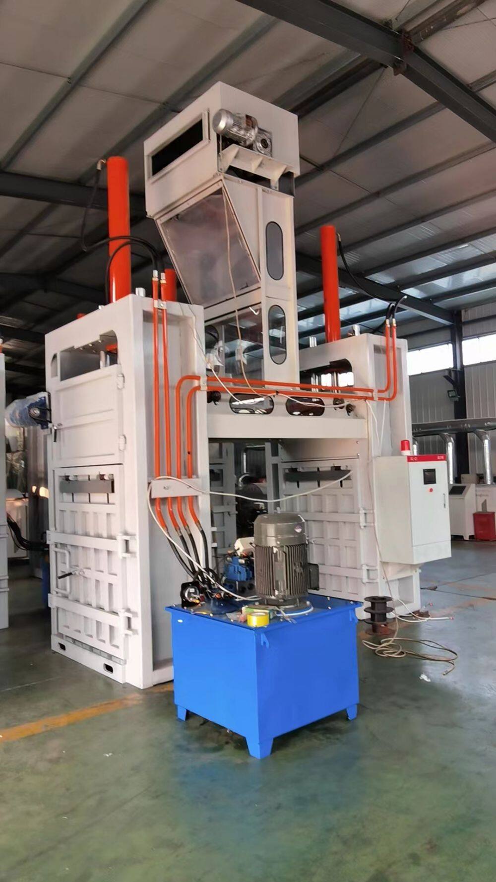 The bale machine is hydraulically driven with vertical structure, which is composed of conveying fan, condenser, machinebody, hydraulic device and automatic control computer.The machine has two baling units and each unit is able to open from three directions, which ensures the bale to be takenout from the machine easily.