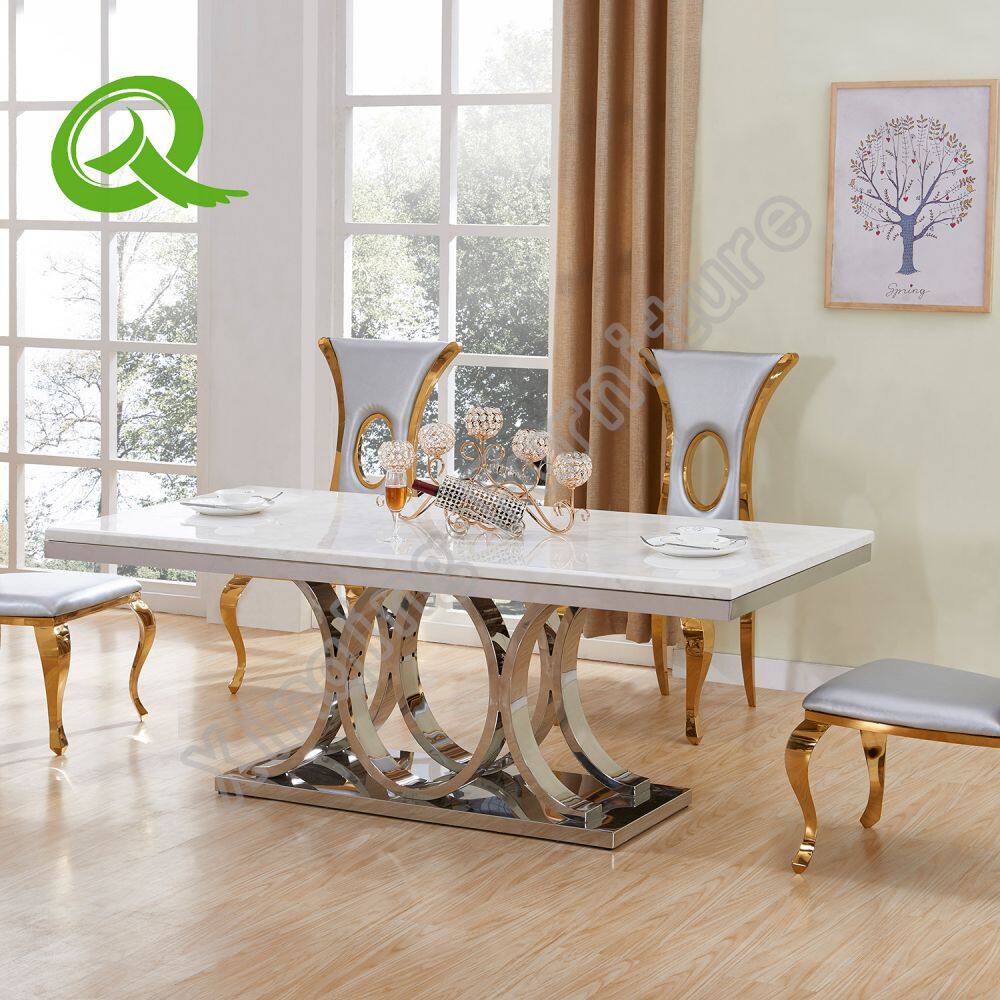 Luxury Dining Table Designs Stainless Steel Frame Marble Top Wedding Table Dining Tables Banquet