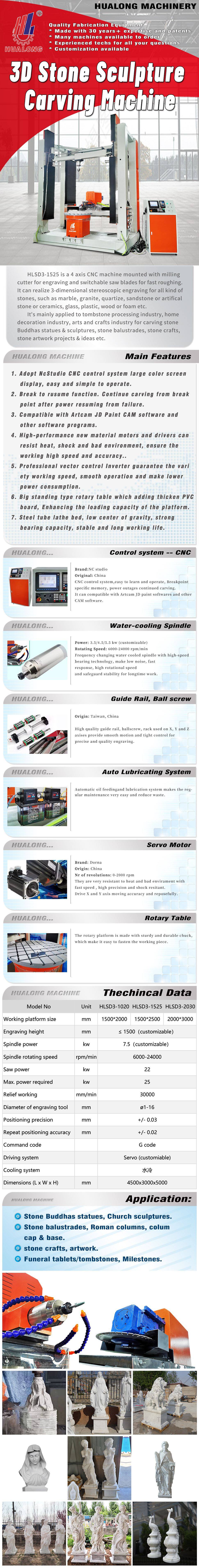 China Equipment Marble Sculpture HLSD3-1525 3D CNC Stone Carving Machine