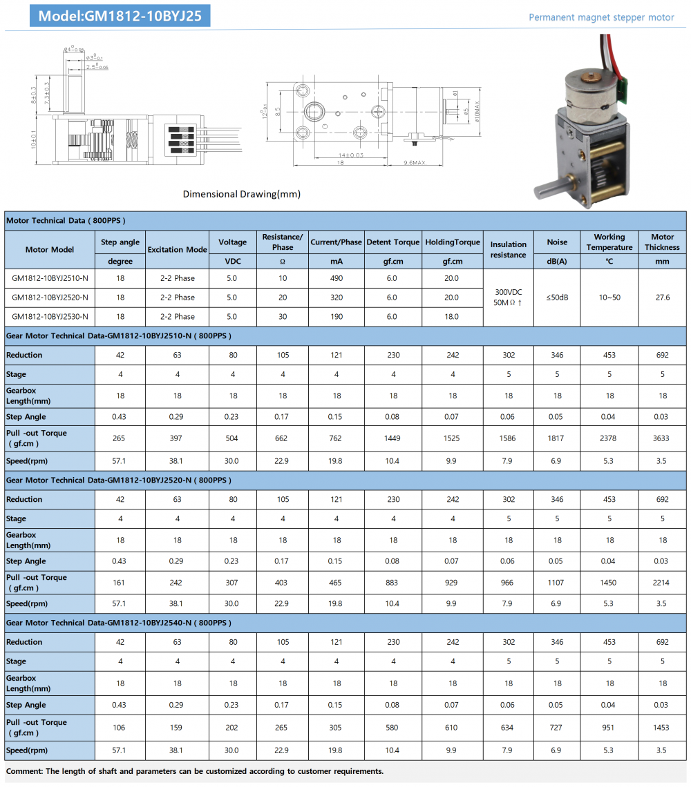 10mm 5v 18 Degree Small PM Stepper Motor With Gearbox Instrument Stepper Motor