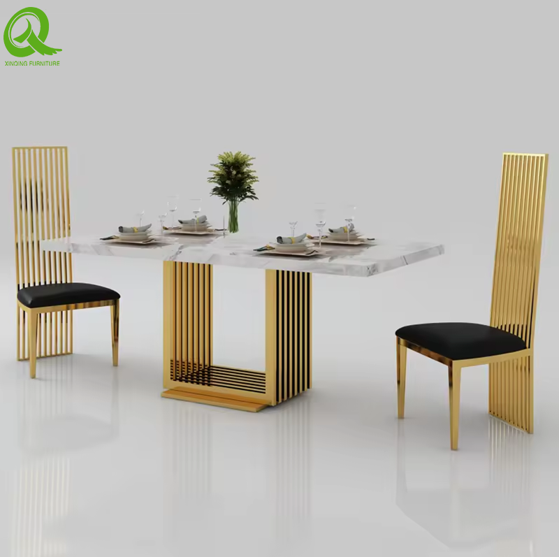 Luxury Royal Style Hotel Dining Marble Table and Stainless Steel Chair Furniture Set