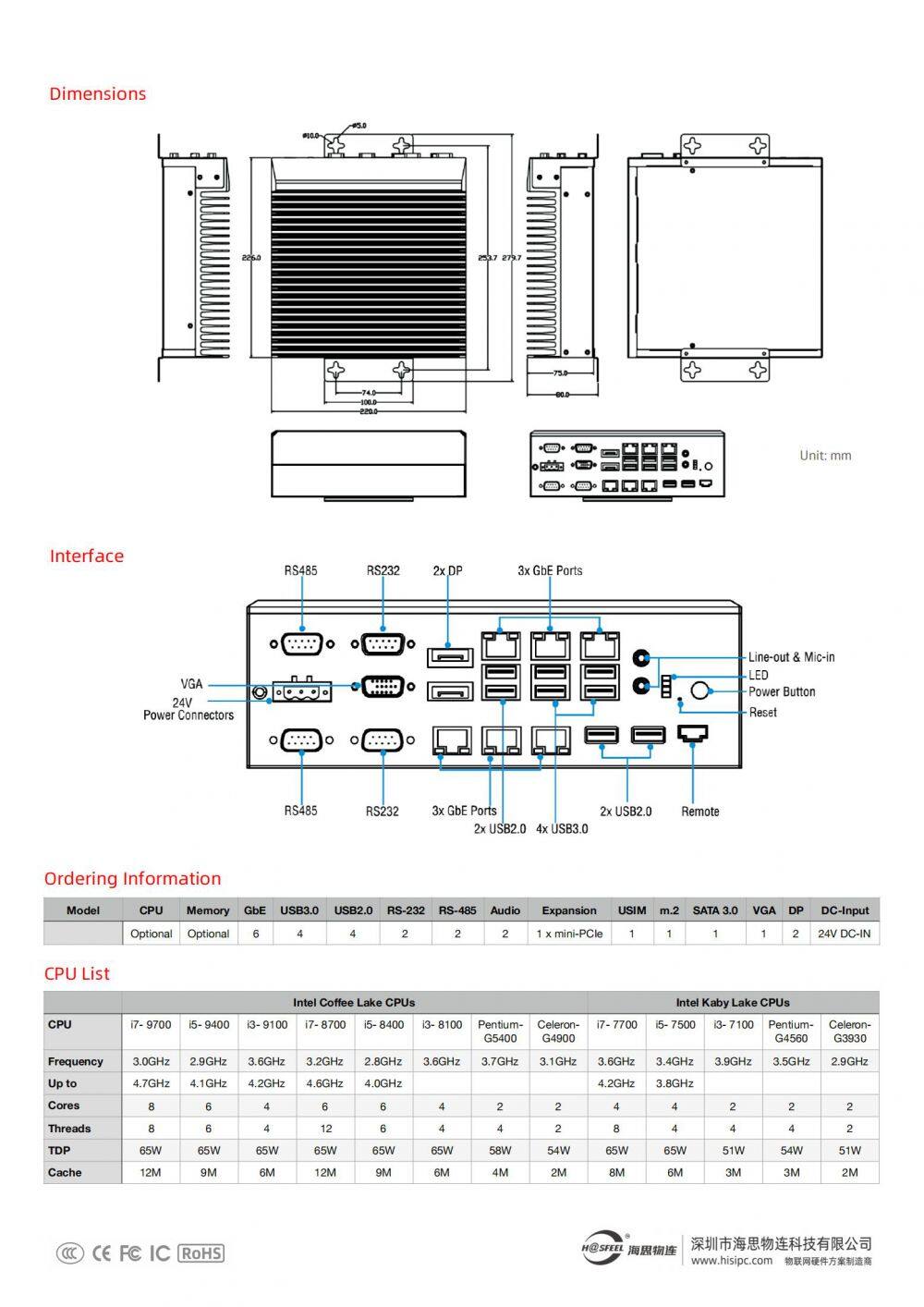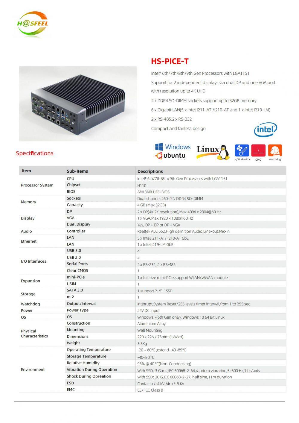 HS-PICE-T Industrial Computer Main characteristics: