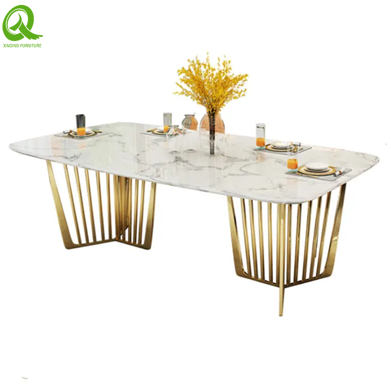 Factory Price Luxury Dining Table Set Stainless Steel Base Marple Top 8 Seater Dining Table