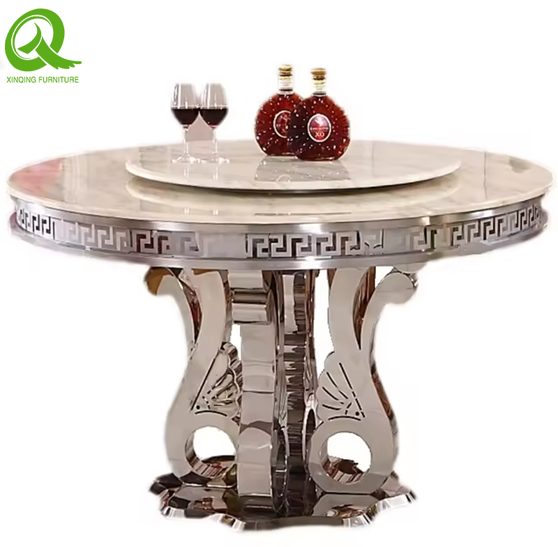 | Item Name: | modern stainless steel round dining table set with marble top rotated centre |