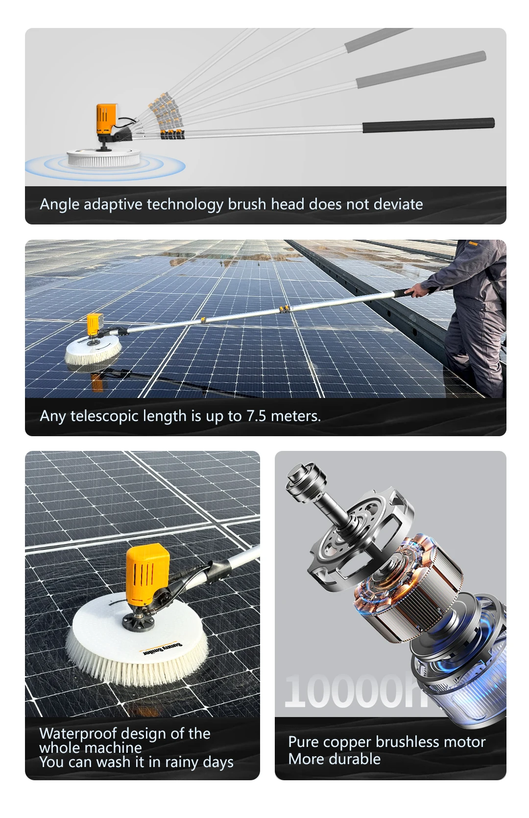 High-quality Solar Panel Self Cleaning System Roller Brush With Long Handle Telescopic Pole X5