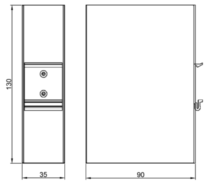 Exterior dimensions | Size:90*35*130mm (L*W*H) Weight:400g Install:RAIL TS35/TS35 slideway |