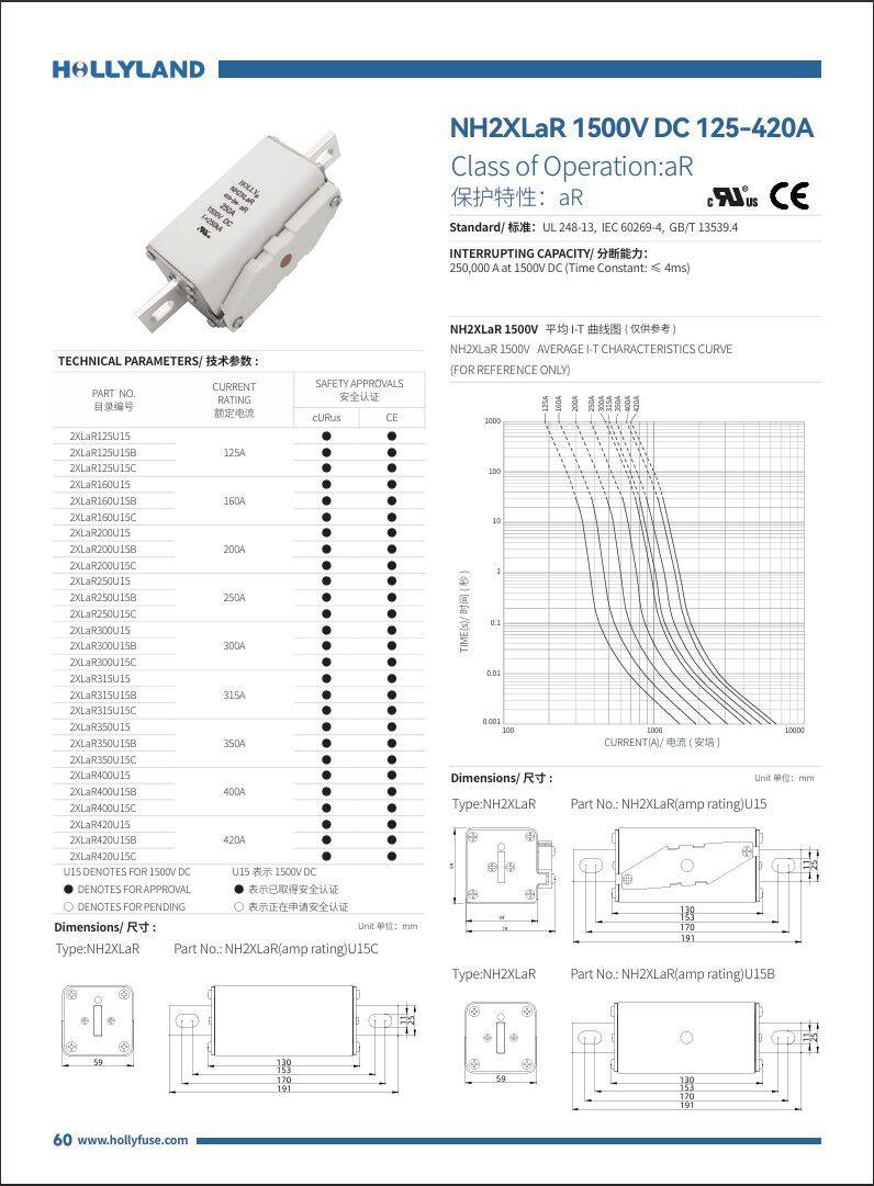 Hollyland New Energy Fuse Energy Storage Fuse NH2XLaR 1500V DC 125A-420A