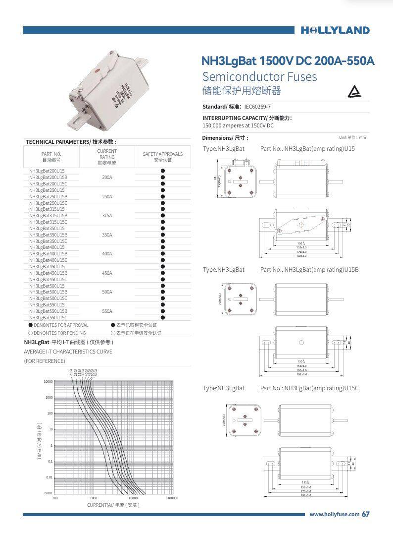 Hollyland New Energy Fuse Energy Storage Fuse NH3LgBat 1500V DC 200A-550A