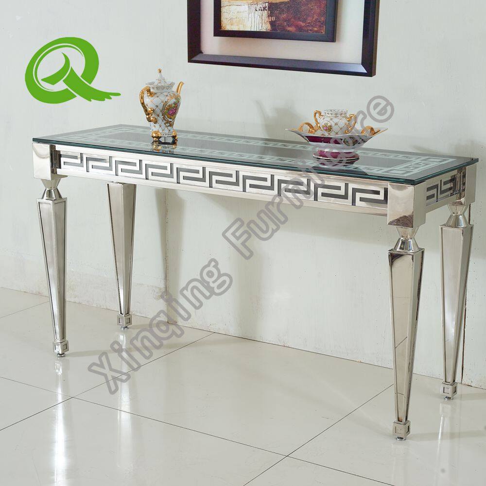Wedding Party Events Furniture Silver Stainless Steel Clear Glass Top Console Table