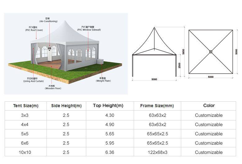 European Style Aluminum Alloy Slope Outdoor Exhibition Wedding Activities Leisure Camp Pagoda Tent 3x3m 4x4m 5x5m 6x6m