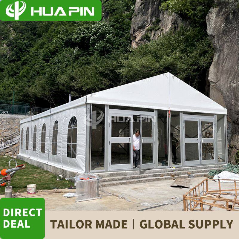 Huapin Construction Technology (Guangdong) Co., Ltd. Specializes in outdoor aluminum alloy tent structure design, quality management, global sales. Satisfaction with our customers for large wedding tents, party tents, outdoor activities, exhibition tents, sports tents, Logistics storage tents, reception tents, sports event tents, temporary meeting tents, etc., have a wide range of uses to meet the needs of the majority of customer groups. It has been exported to more than 150 countries and regions, and has been unanimously trusted and praised by customers. Our business philosophy: adhering to the quality and service to accompany you throughout the process, customer satisfaction is our eternal pursuit.Huapin tents continue to innovate and develop and help customers choose the prefabricated aluminum alloy structure building tents that fit the market specifications, and make every detail with the technology of excellence. At the same time, we have many years of experience in import and export of tents and professional technicians to provide solutions.