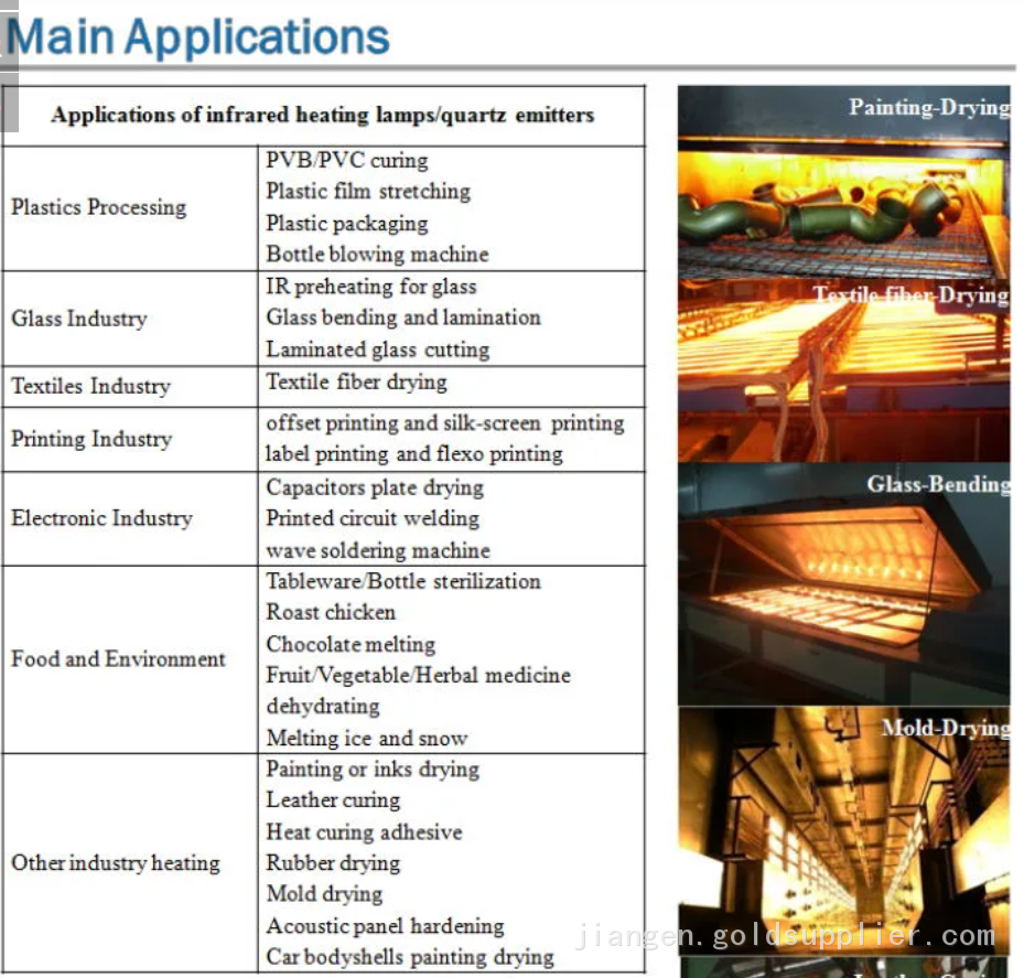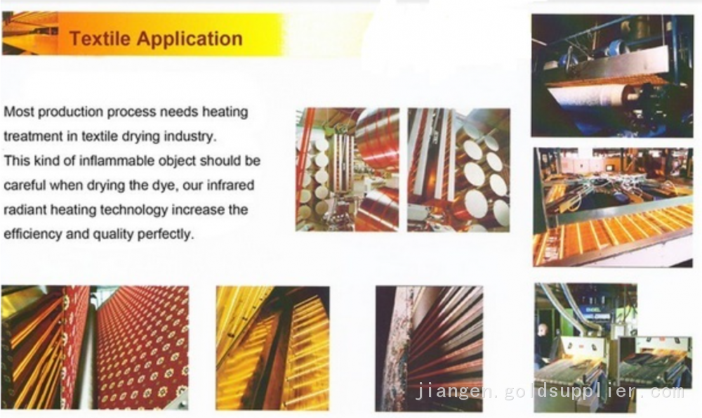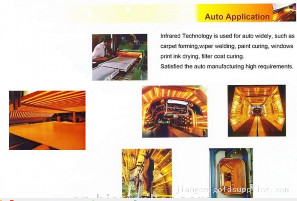 Infrared quartz heaters are widely used in industrial drawing such as water-based paint, water-based oil, water-based resin, water-based ink, glass, resin, plastic, papermaking, etc. They are also suitable for heating equipment, sterilization cabinets, paint sprayers, optical air conditioners, drying and curing, and food processing.
