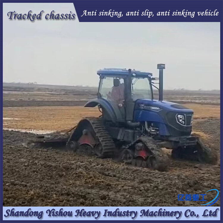 High Horsepower Tractor Modified With Triangular Track Wheels, Anti Sinking and Anti-skid on Muddy Ground