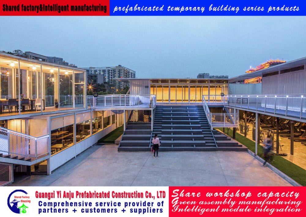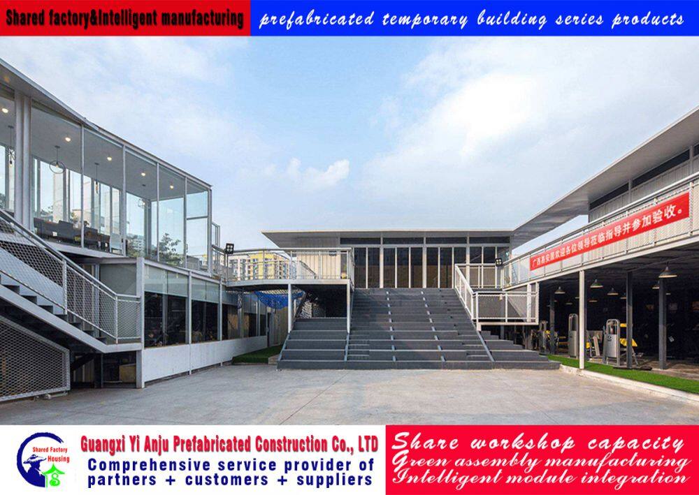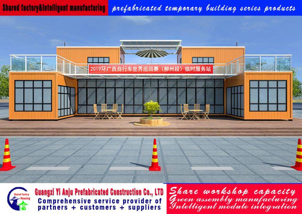 Guangxi Anju Prefabricated Building Co., Ltd. adheres to the temporary architectural design concept of "module integration, recycling and green assembly", and integrates the whole industrial chain of design, production, manufacturing and installation, to realize the energy saving, environmental protection and whole life cycle value of building products.