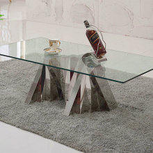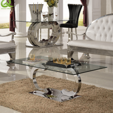 Hot Selling Modern Luxury Silver Stainless Steel Clear Glass Coffee Table