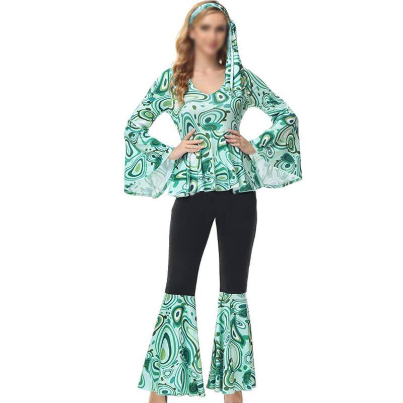 Woman 70s Retro Hippie Disco Hippie Costume Halloween Party Carnival Hippies Cosplay Fancy Dress