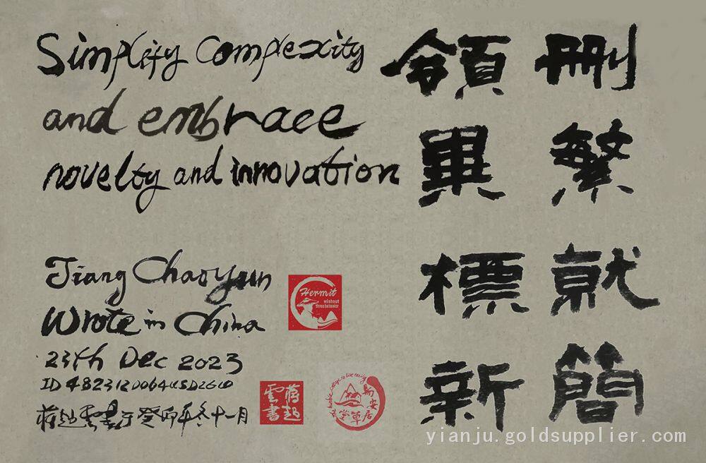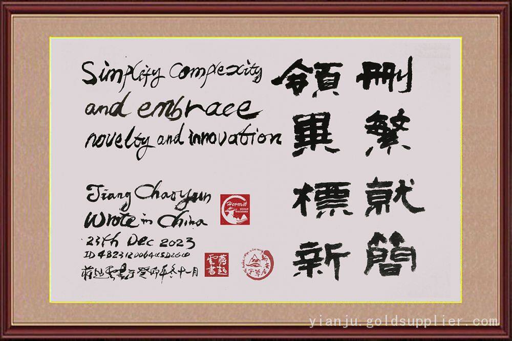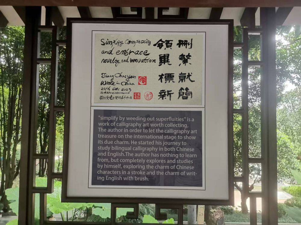 "simplify by weeding out superfluities" is a work of calligraphy art worth collecting,The author in order to let the calligraphy art treasure on the international stage to show its due charm. He started his journey to study bilingual calligraphy in both Chinese and English. Although the road is far, it will come; if it is difficult, it will be done. He simplified his calligraphy works that foreigners could also understand and like.