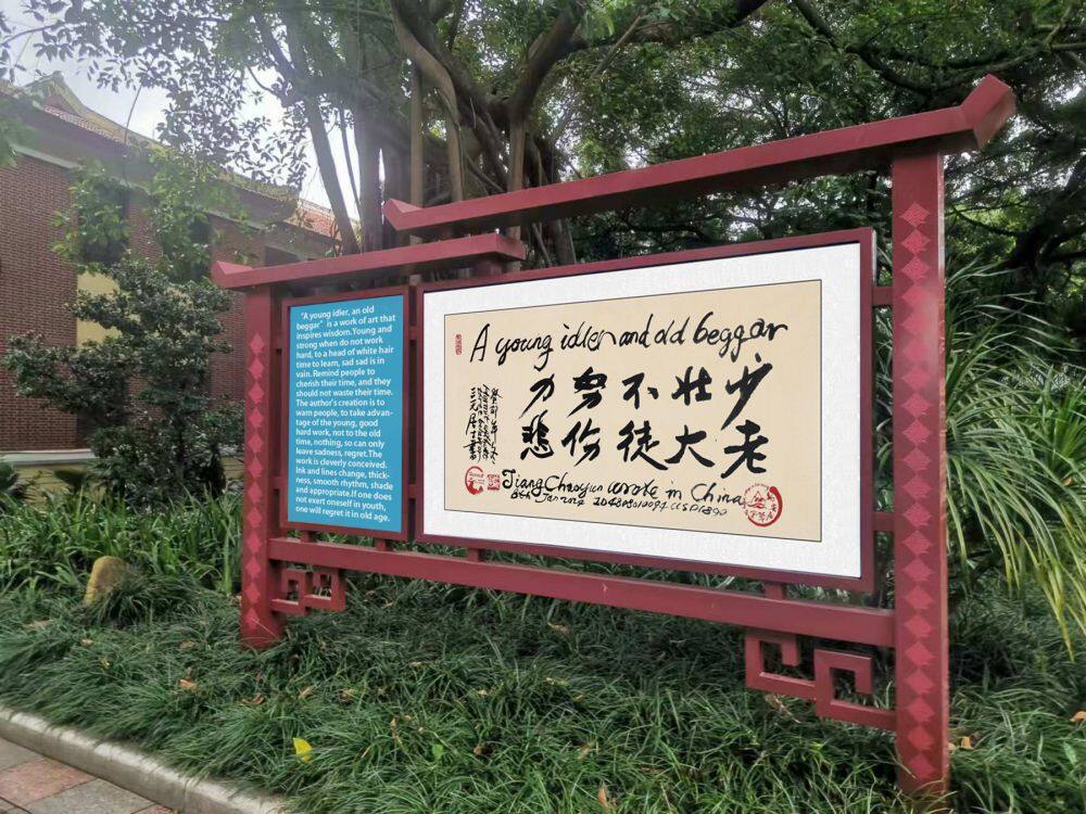 This work has been applied to the public culture column publicity, which has the role of open visit and appreciation, and has a certain public education significance. Suitable for parks, squares, libraries and other public places decoration, design and application to the real scene has won the appreciation of the people.