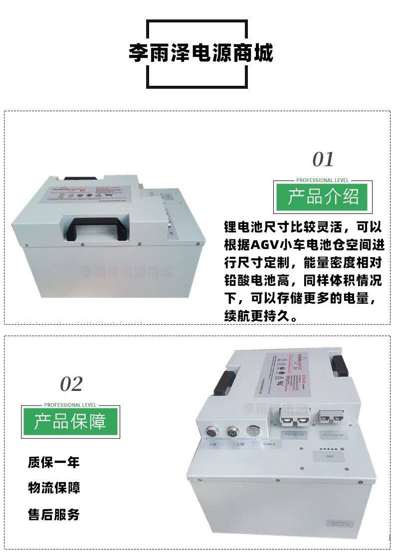 Hawker lithium battery packs come in 24V, 48V, 72V, 96V, etc., with 24V and 48V being widely used. The available capacities are 10AH, 20AH, 30AH, 40AH, 50AH, 60AH, 80AH, 100AH, 120AH, 160AH, 180AH, 200AH, and 300AH. The size of lithium batteries is relatively flexible and can be customized according to the space of the AGV car battery compartment. The energy density is relatively high compared to lead-acid batteries, and under the same volume, it can store more electricity and have a longer endurance. Simultaneously supporting fast charging, standard Hawker lithium batteries can achieve 2C charging, while customized ones can achieve 5C charging. The standard discharge is 0.5C, and it supports 2C discharge.