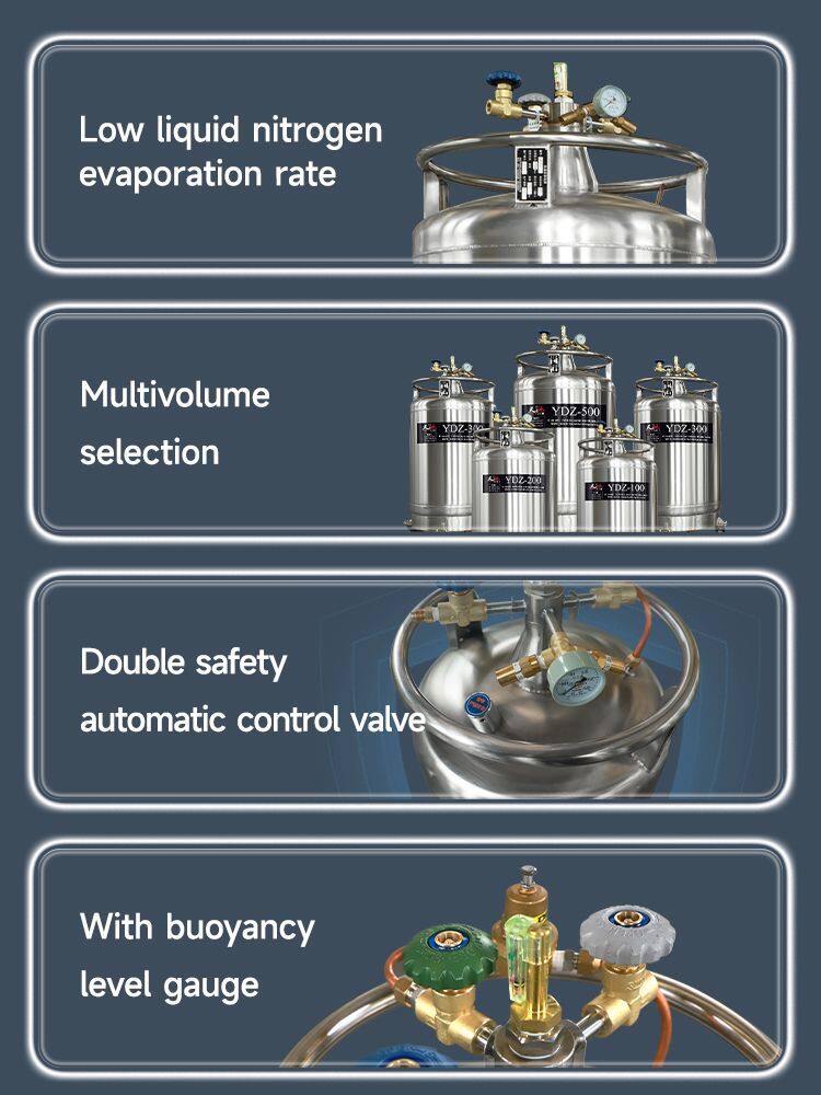 2. High safety performance: Equipped with double safety automatic valves and ultra-low temperature stop valves, it has double safety protection measures to ensure the safety of product use.