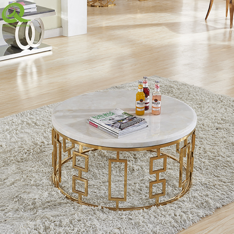 Luxury Marble Round Top Side Coffee Table Stainless Steel Center Table Tea Table For Living Room Furniture