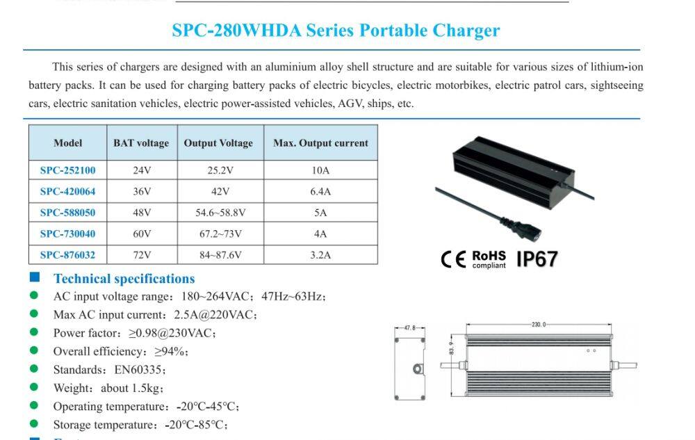 280W 24V 36V 48V 60V 72V Smart Lifepo4 Lithium Battery Charger for E-bike E-scooter AGV